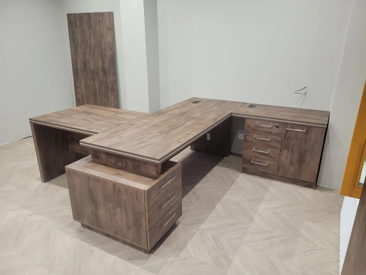 Представляем вашему вниманию комплексное решение для современного офиса – функциональную и стильную мебель из ЛДСП, созданную специально для тех, кто ценит комфорт, практичность и безупречный внешний вид. Вся мебель изготовлена из ЛДСП с натуральной текстурой благородного дерева. Декор под натуральный орех создает атмосферу солидности и профессионализма, идеально подходящую для представительских офисов, кабинетов руководителей и переговорных комнат. Каждый элемент разработан с учетом потребностей современного офиса. Просторные рабочие столы с достаточной площадью для размещения оргтехники, документов и личных вещей. Встроенные кабель-каналы обеспечивают аккуратную организацию проводов – никаких лишних проводов на виду! Представительские столы для переговорных. Массивные столы создают идеальные условия для деловых встреч и совещаний. Достаточно места для комфортного размещения 6-8 человек. Рабочие L-образные столы. Оптимальное решение для руководителей и специалистов. Угловая конфигурация позволяет разделить рабочее пространство на зоны: для работы за компьютером, работы с документами и для приема посетителей. Системы хранения. Высокие шкафы со стеклянными дверцами и открытыми полками, компактные тумбы с ящиками – все для удобной организации документооборота и поддержания порядка. Наша мебель – это инвестиция в комфорт, продуктивность и имидж вашей компании. Качественное рабочее пространство мотивирует сотрудников и производит положительное впечатление на клиентов.