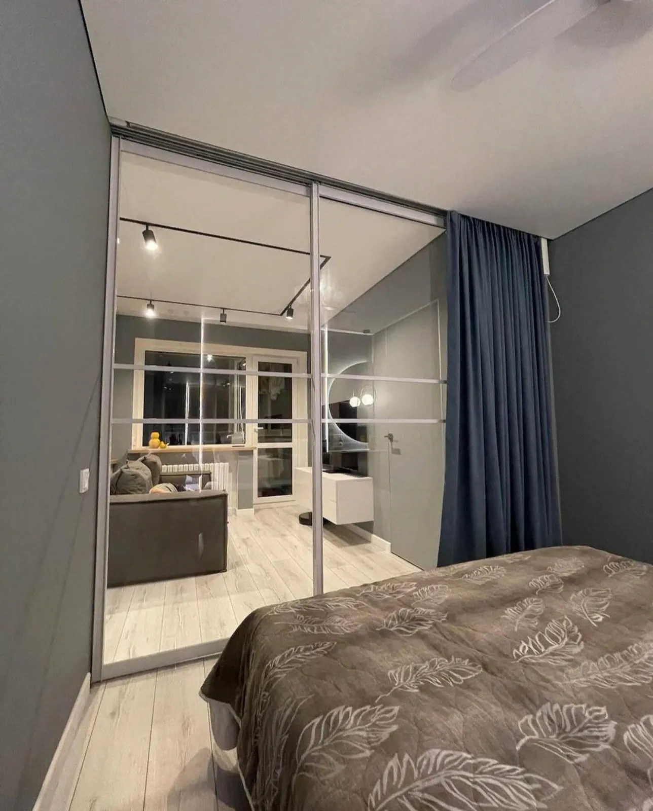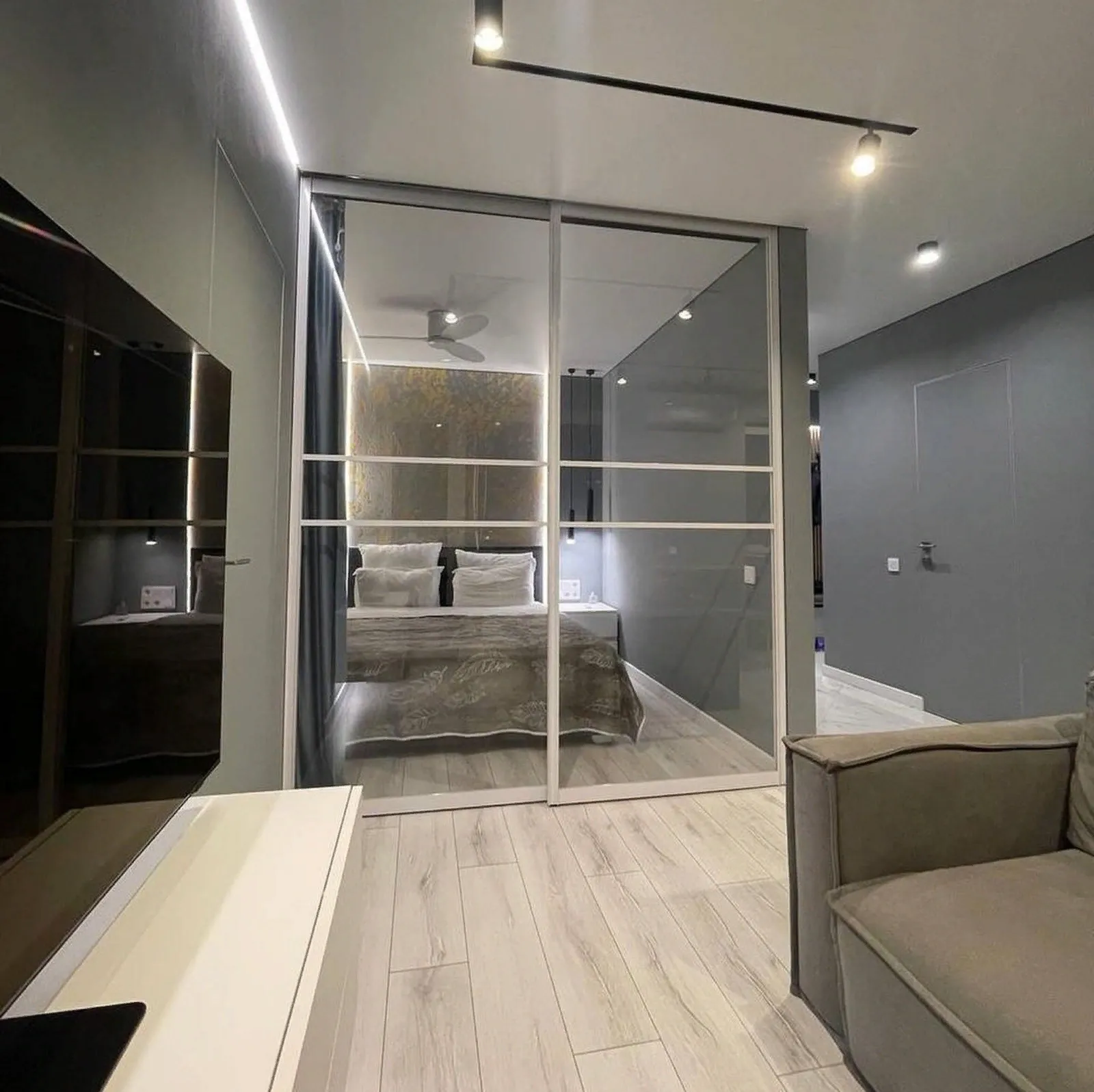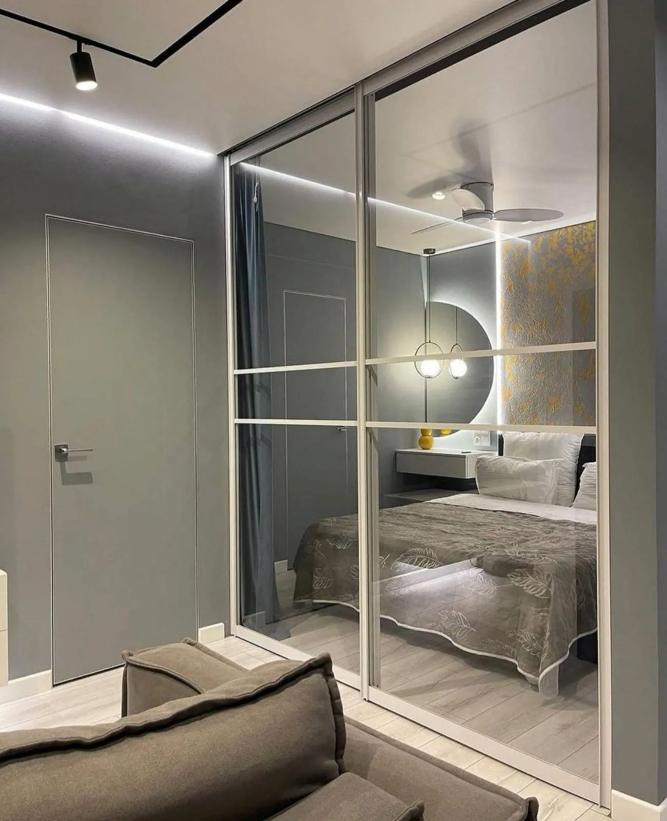 Всё быстрее набирает популярность зонирование пространства с помощью систем межкомнатных перегородок. Система не нуждается в напольных направляющих,проём полностью свободен. Сама конструкция состоит из нескольких элементов – верхний направляющий профиль,декоративная накладка,ролики,система стопорв Дизайн профиля-лаконичен и изящен,его форма служит удобной ручкой,позволяющей свободно перемещать створки. Использование прозрачного стекла в комплекте с профилем в цвете серебро,придаёт лёгкость конструкции и делает её ненавязчивой с эстетической точки зрения.