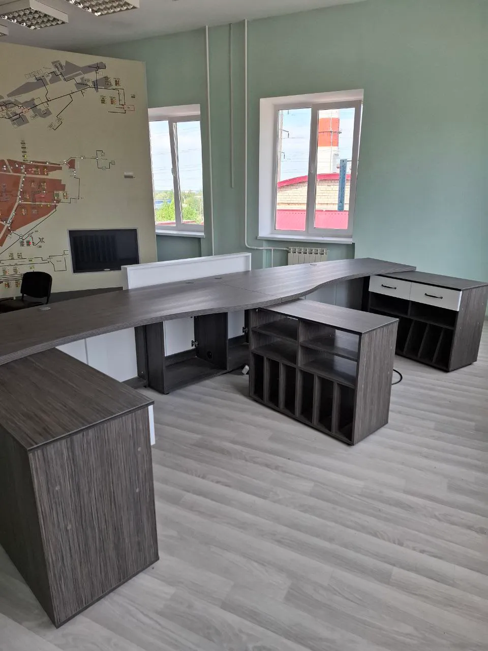 Представленная стойка ресепшн отличается лаконичным дизайном,чего мы добились с помощью глянцевого корпуса со вставками в цвет столешницы. Весь проект разработан с учётом выполнения стойкой всех своих функций , организованы зоны для комфортной работы персонала и приёма посетителей. Благодаря качественной обработке торцов кромкой , стойка надолго сохранит эстетичный вид,что немаловажно в интерьере приёмной .
